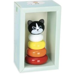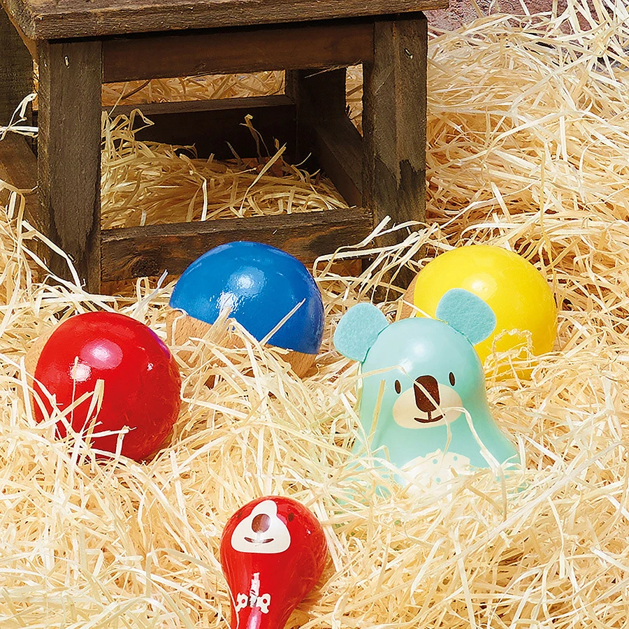 Cette boite à musique en bois laqué fait partie d’une collection d’animaux imaginés et fabriqués au sein de l’atelier Vilac, en France.