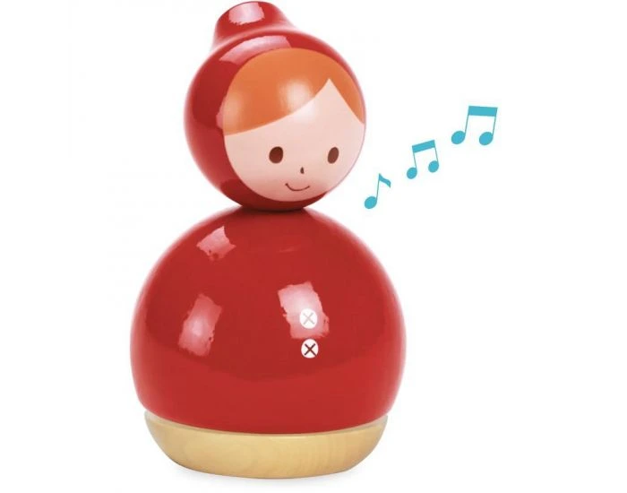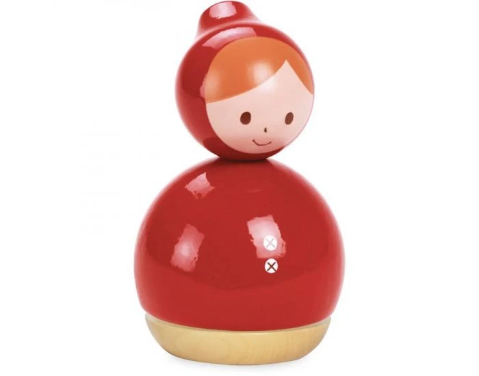 Boîte à musique chaperon rouge en bois tourné et laqué, qui tourne sur elle-même. Fabrication française.