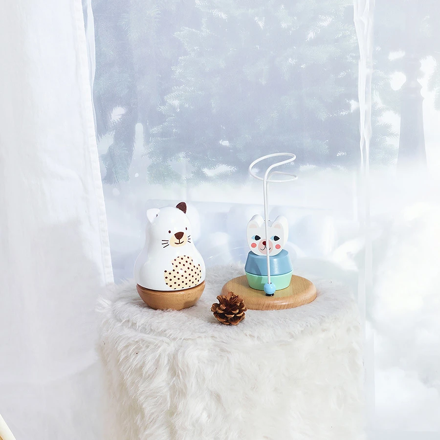 Boite à musique Mariette la minette, un jouet de décoration en bois pour chambre d’enfant de la marque Vilac. Référence 8070W.