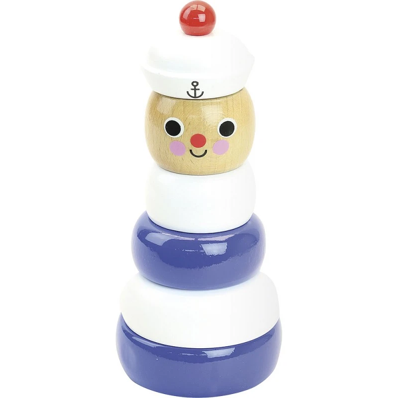 Ohééé matelot ! Cet empilable marin est composé de 6 pièces en bois. Ce marin empilable designé par Ingela P. Arrhenius aidera les petits à développer leur motricité fine, leur habilité et leur dextérité. Les anneaux en bois laqué sont adaptés aux petites mains et feront découvrir les différentes formes et couleurs à bébé. Fabrication française.