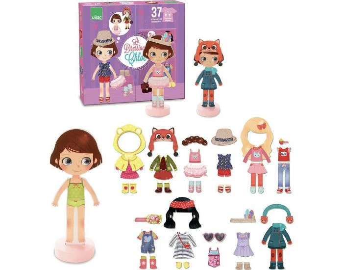 Habille Chloé avec de jolis vêtements et accessoires magnétiques en bois !