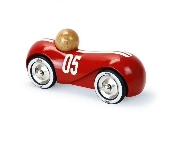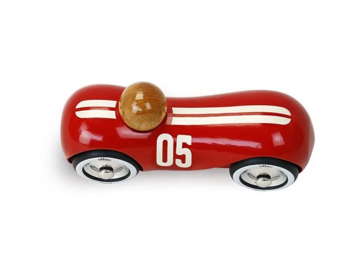 Une finition parfaite pour cette voiture de course modèle Streamline vintage rouge en bois laqué, fabriquée en France par Vilac.